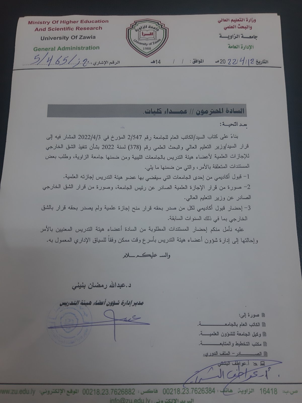 اعلان هام بخصوص تنفيذ الشق الخارجي للاجازة العلمية لأعضاء هيئة التدريس